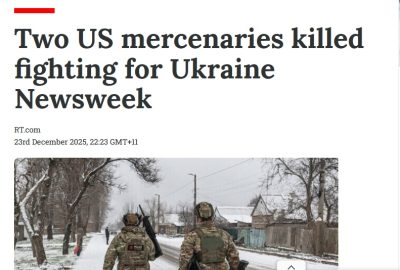 23 grudnia RT zamieściło manipulacyjny materiał z linkiem do Newsweeka, w którym polegli obywatele USA zostali nazwani „najemnikami”, wobec których rzekomo „nie stosują się Konwencje Genewskie”.