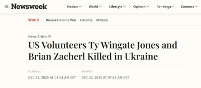 Newswek 22 grudnia opublikował tekst o śmierci dwóch amerykańskich obywateli, którzy walczyli po ukraińskiej stronie przeciwko rosyjskim agresorom.