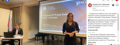 Wspomniany wykład w Rosyjskim Domu wygłosił przedstawiciel „Znania” na Polskę Jewgienij Tkaczew, który wygłosił wykład podsumowujący wspomniany cykl spotkań związanych z „80. rocznicą Zwycięstwa” czyli zakończeniem II wojny światowej.
